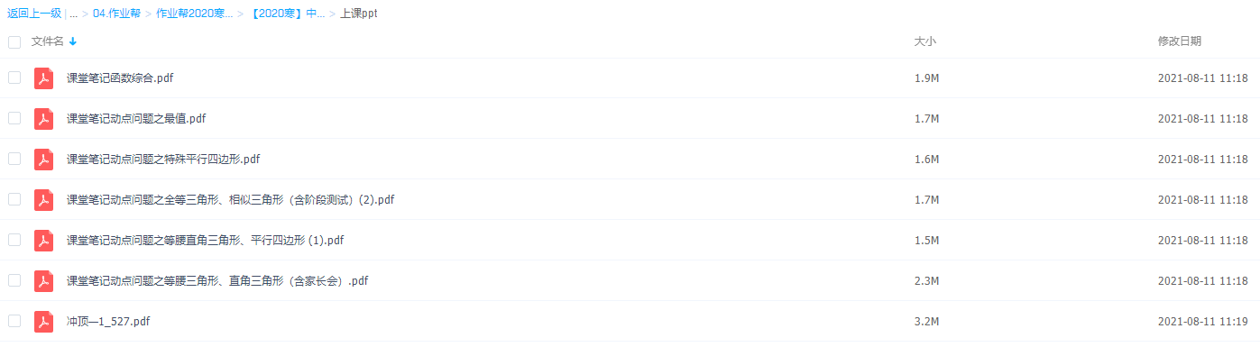 此课件来自作业帮网校,2020作业帮中考数学寒假冲顶班(全国通用版)(陈丽),包含视频课程和讲义资料。此课件主要知识点包括:动点问题之全等三角形、相似三角形、动点问题之特殊平行四边形、动点问题之等腰三角形、直角三角形、动点问题之最值等视频