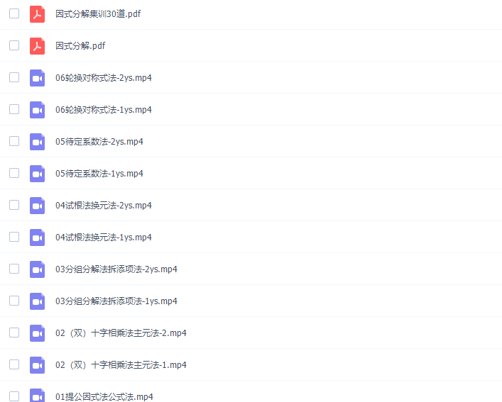 此课件来自蘑菇网校,杨淳子、王娇小绿刷题因式分解刷题视频。此课件主要知识点包括:提公因式法公式法、十字相乘法主元法、分组分解法拆添项法、试根法换元法、待定系数法、轮换对称式法、因式分解。