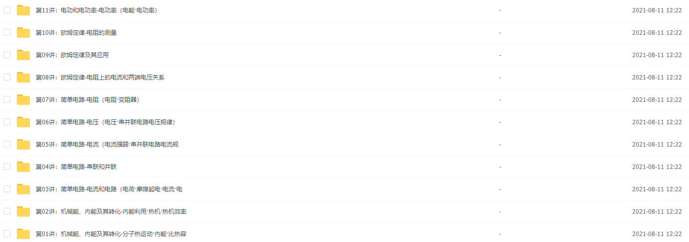 课程目录: 状态 讲次 名称 已上线第1讲:内能-热和能(分子热运动·内能·比热...