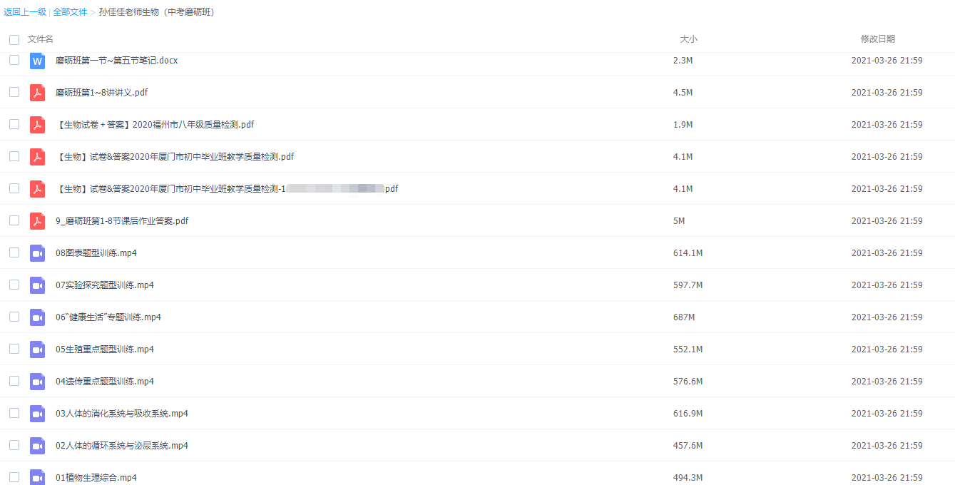 此课件来自有道课堂,有道初中生物 孙佳佳老师生物(中考磨砺班)。 此课件主要内容包括:人体的循环系统与泌尿系统、人体的消化系统与吸收系统、生殖重点题型训练、遗传重点题型训练、实验探究题型训练、健康生活”专题训练等视频