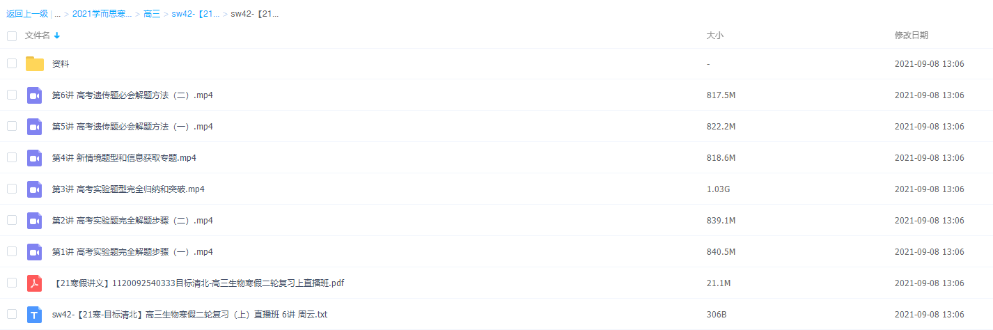 此课件来自于学而思网校,22021学而思高三周云生物寒假二轮复习目标清北(上),包括课程视频回放以及课堂资料讲义。主要知识点包括:高考实验题完全解题步骤、高考实验题型完全归纳和突破、新情境题型和信息获取专题和高考法传题必会解题方法等视频。生物教学也不只是教学生背知识、解题;更是让学生认知生命、理解生命、解读生命、探究生命并实践应用生命原理解决问题,达成核心素养。