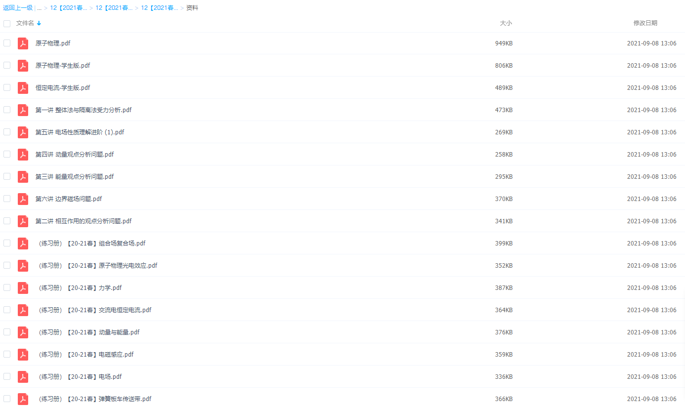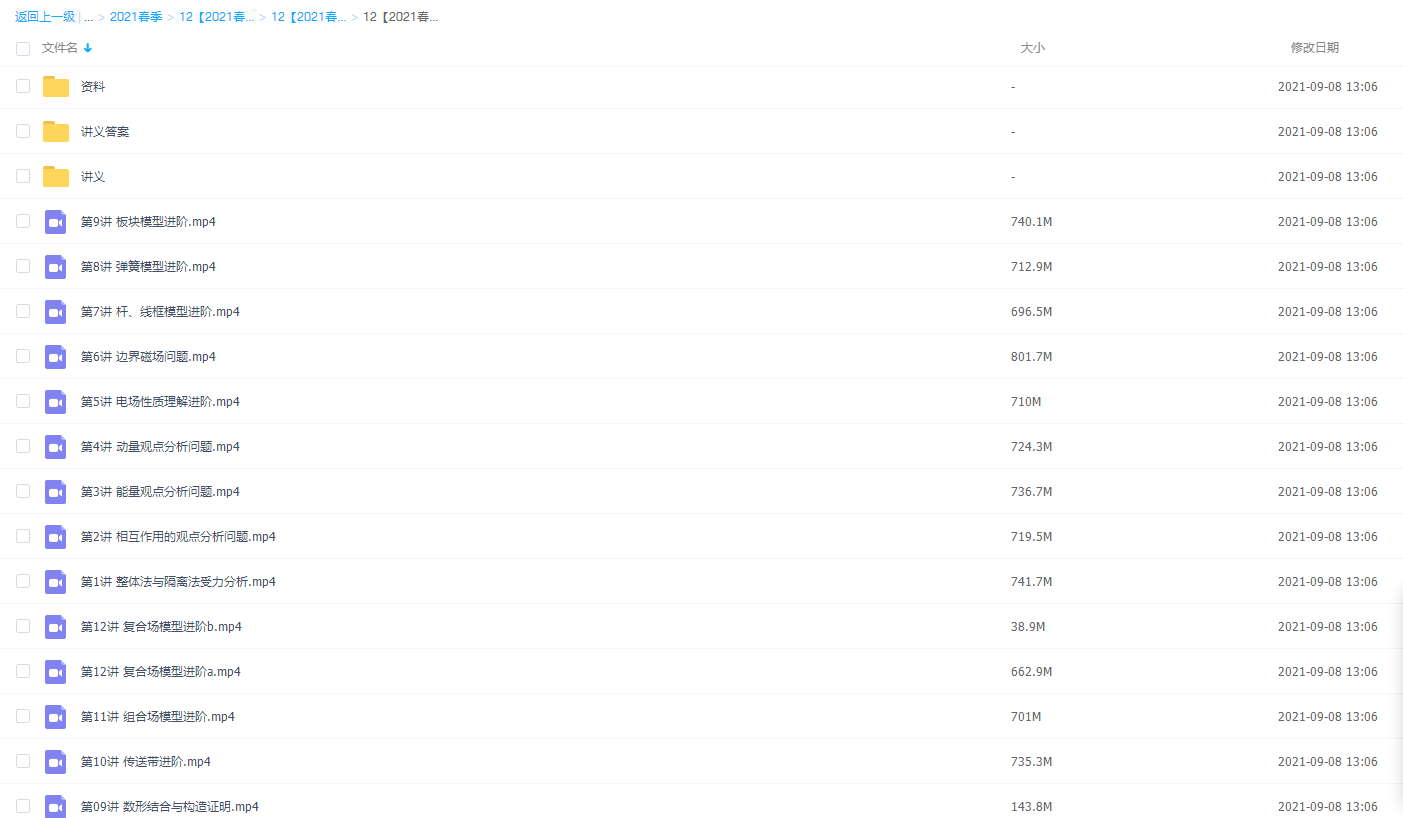 此课件来自于学而思网校,2021学而思高三物理章进二轮复习(上)目标清北直播班课程,包括课程视频回放以及课堂资料讲义。主要知识点包括整体法与隔离法受力分析、相互作用的观点分析问题、能量观点分析问题、动量观点分析问题、电场性质理解进阶、边界磁场问题、杆、线框模型进阶、弹簧模型进阶、板块模型进阶、传送带进阶、组合场模型进阶、复合场模型进阶等视频。