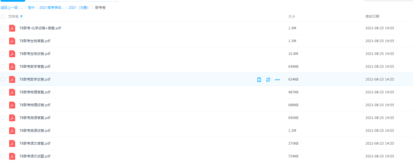 2021高考语文英语物理数学生物化学联考卷试题整理合集