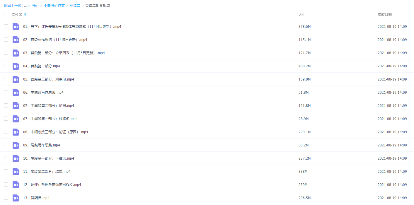 英语二配套视频小白考研作文冲刺特训营学习资源