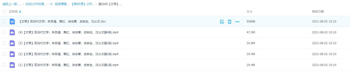学而思【文常】现当代文学:朱自清萧红徐志摩史铁生沈从文
