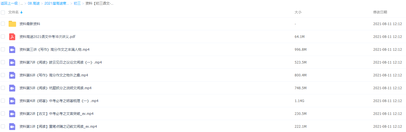 此课件来自高途课堂,2021高途初三中考许天翼语文寒假班初中视频课程,包含视频课程和讲义资料 。主讲老师专注初中语文一线教学,熟知中考命题规律,擅长考点的挖掘与归纳,让学生轻松得分。此课件主要知识点包括:重笔点睛之记叙文阅读、中考必考之文言突破、高分作文之丰满人物、中考必考之明著梳理、坑题抓分之说明文阅读、高分作文之物外之趣等视频