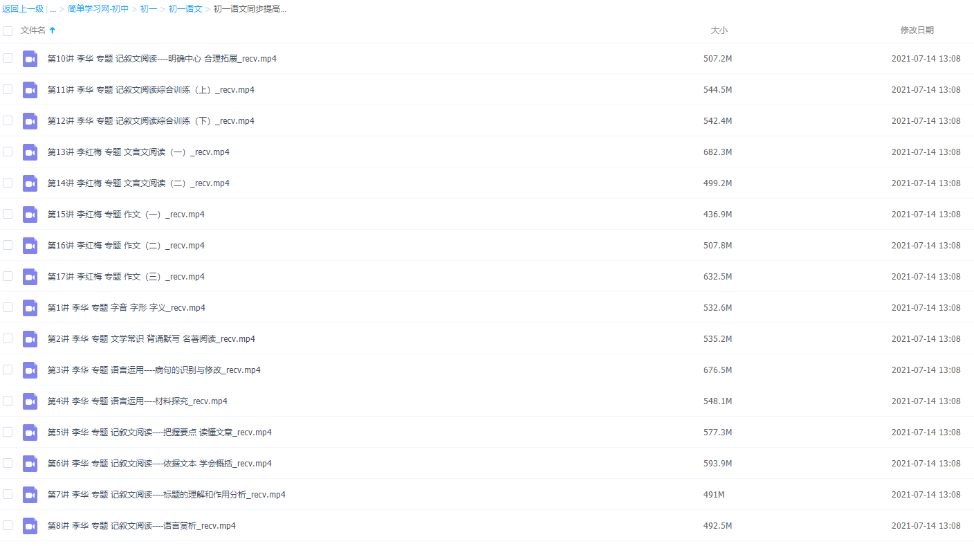 此课件来自简单学习网,初一李华语文同步提高视频课程。主讲李华老师对中考有深入的研究和思考,教学成绩优秀。此课件主要知识点包括:说明文阅读、写作、语言运用、综合性学习、记叙文阅读、文学常识等视频。