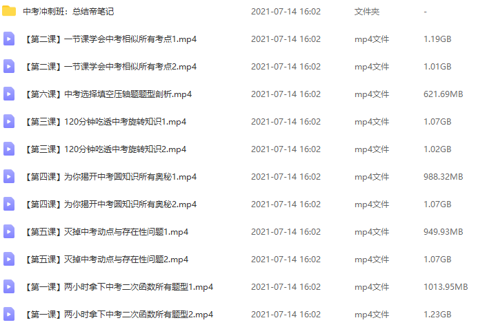 初三要进行中考冲刺了,一定要抓住时间多做练习,本课件为初三数学中考冲刺班,里面有很多知识点讲义和视频课程,帮助同学们做好准备来迎接中考!